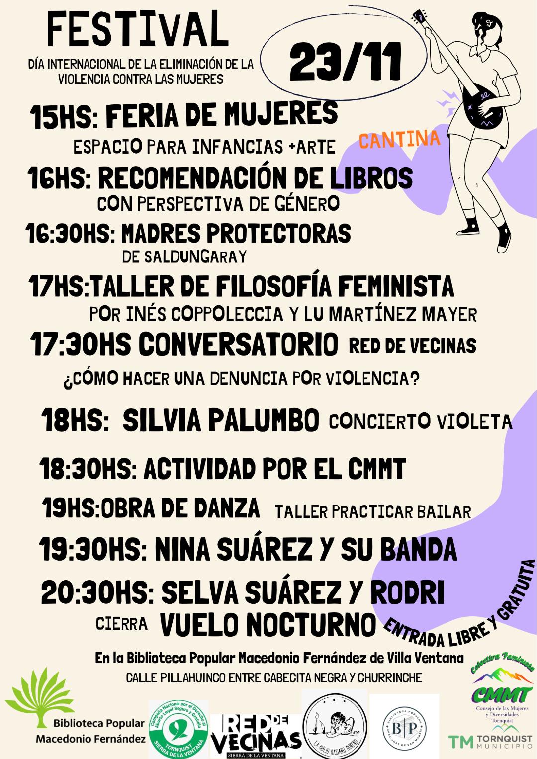 La Biblioteca Popular Macedonio Fernández, ubicada en Villa Ventana, anunció la realización de un festival en conmemoración del Día Internacional de la Eliminación de la Violencia contra las Mujeres. La actividad tendrá lugar el 23 de noviembre y reunirá propuestas culturales, artísticas y formativas abiertas a la comunidad.